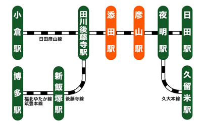 福北ゆたか線、筑豊本線、後藤寺線、日田彦山線経由