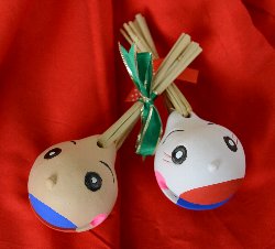 添田町のマスコットキャラクター、ひこちゃんとゆずちゃんの土鈴です。このキャラクターは英彦山がらがらがモチーフになっています。 (ひこちゃん、ゆずちゃん各2種類あります) |