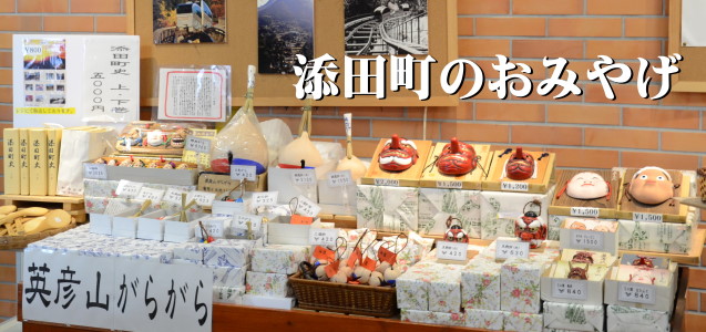 英彦山で栽培した柚を使ったジャムとみそです。手作りの味が好評です。他にも添田町の特産品を使った添田ブランドの商品がたくさんあります。 |